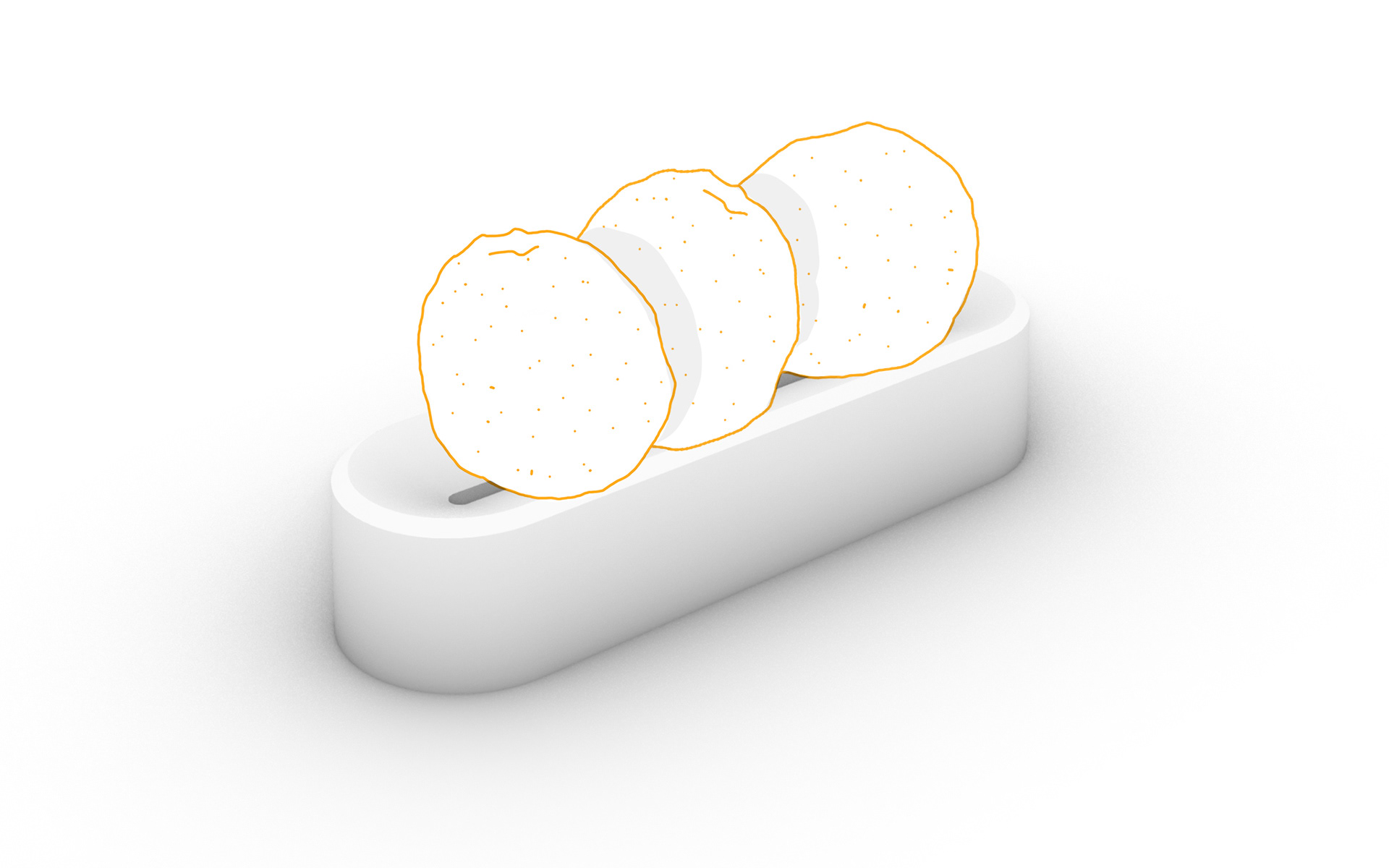 the fruit line-up represents a new formal approach to classic fruit bowls on the dining table.